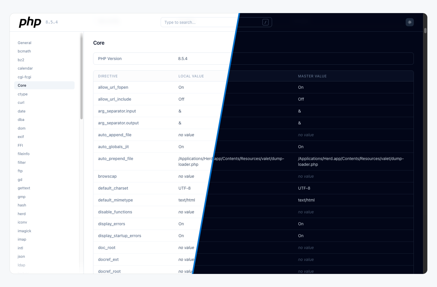 A modern, visually polished replacement for the built-in `phpinfo()` output, making the PHP environment details far easier to read and navigate.